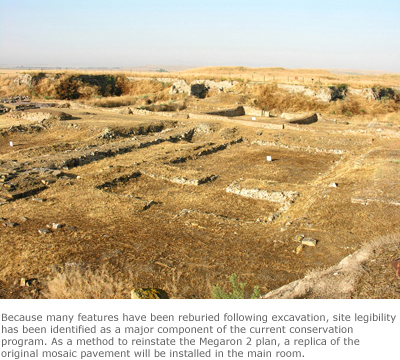 Results Removal and burial of the exquisite Phrygian mosaic pavements have challenged the study and enjoyment of both pavements by professionals and the visiting public. The site’s decreased plan legibility has made the proposed multi-phase project of documentation, research, conservation and installation of a replica of the Megaron 2 mosaic critical in improving visitor experience and increasing knowledge of mosaic development in the ancient world. This process will further allow the participation of the local village residents and students to work together in a way not explored during the early or current years of the excavation. Remedial conservation and community participation are integral in safeguarding important sites such as Gordion and its architectural treasures. |